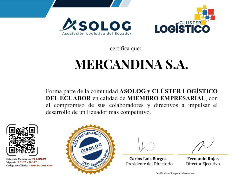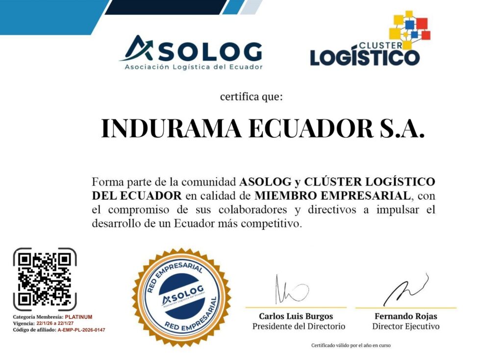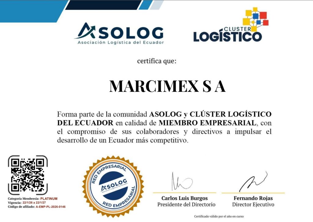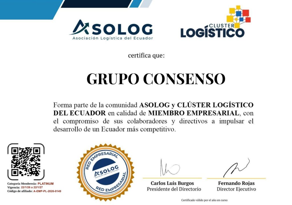 Nos complace compartir con toda la organización que Grupo Consenso, Marcimex, Indurama y Mercandina forman parte de la comunidad ASOLOG y del Clúster Logístico del Ecuador en calidad de Miembros Empresariales categoría PLATINUM, vigencia 22/01/2026 al 22/01/2027.